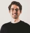 A modern, dark-colored, modular home situated in a lush forest environment. Large windows allow warm interior light to spill out, contrasting with the natural greenery surrounding the structure. The building has a sleek, geometric design, with a sloping roof and a wooden deck that extends from its side.